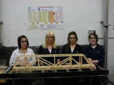 Students at Bishop Alexander Carter faced a bridge building challenge this past week in their woodshop class. The students had been given the task of building model bridges and then the completed projects were subjected to weight tests. The rules allowed only for glue and wood 1/2 inch by 1/2 inch to be used. In the end the majority of the bridges were able to remain stable even with a weight of 300 lbs pulling down on them. Savanna Lamoureux, one of the woodshop students said that the day was a lot of fun and it was a great opportunity for the students to express their school spirit. “We really had a lot of fun.” said Lamoureux. “Not only building the bridges, but also destroying them after it was all done!”