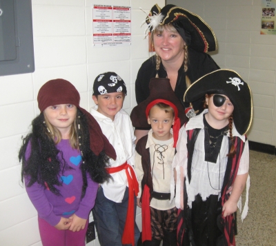 On International “Speak Like a Pirate” day the staff and students at St. Catholic Elementary Andrew School donned their eye patches, bandana’s, three cornered hats and secret treasure chests to celebrate all things pirate. Pictured are teacher Mandy Waugh with students Kenzie, Braxton, Joel and Leah.