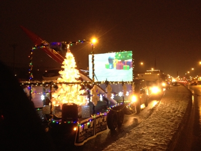 Bishop Alexander Carter staff and students participated in this year’s Sudbury Santa Claus Parade. The theme of the parade was Christmas past and future. The Bishop float depicted Christmas of the future with students dressed as robots delivering Christmas gifts. There was a large rocket on the float made from equipment used in the Manufacturing Specialist High Skills Major program. The float was constructed by students in the Welding class who prepared a special mount for a projector which showed an animated robot delivering Christmas gifts. This animation was created using programs in our Communication and Technology Specialist High Skills Major program. To go along with the theme of the float, students handed out candy rockets to the children along the parade route. Bishop Alexander Carter staff and students want to wish everyone a Merry Christmas and Happy New Year!