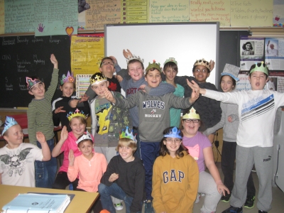 Core French St. Andrew students enjoyed learning about influential historical women St Catherine and St Marguerite Bourgeoys. They embraced the French tradition of decorating hats and wore them proudly on St Catherine Day. Pictured are the students of the grade 5/6 class sporting their crowns.