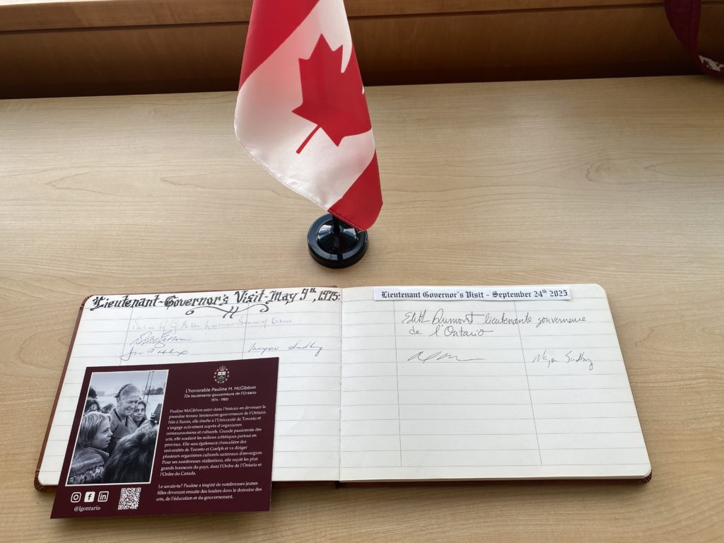 Nearly 50 years later, Lieutenant Governor Dumont’s visit created a remarkable link between past and present. Sudbury Mayor Paul Lefebvre also took part in the event, signing his name beside the 1975 entry made by Mayor Fabbro.