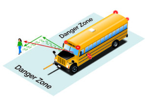 - Stay out of the DANGER ZONE. If you can touch the bus, you’re too close. Use 10 giants steps to take you out of the DANGER ZONE, and make sure you and the bus driver can see each other.