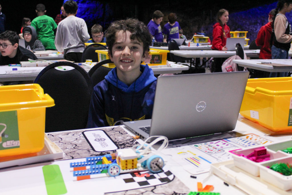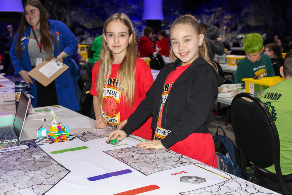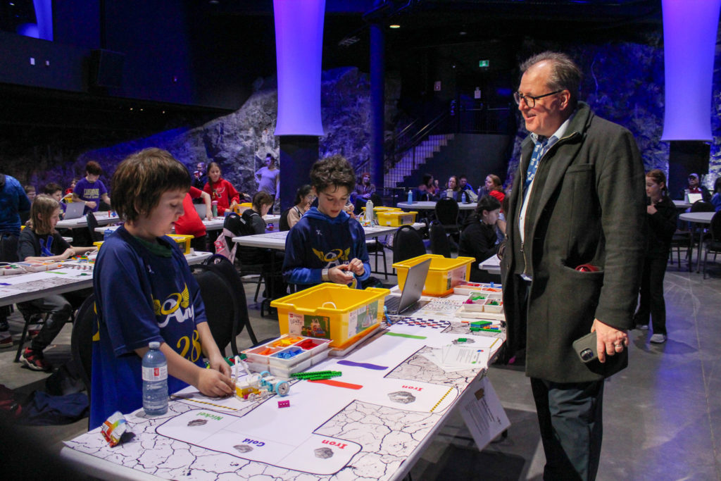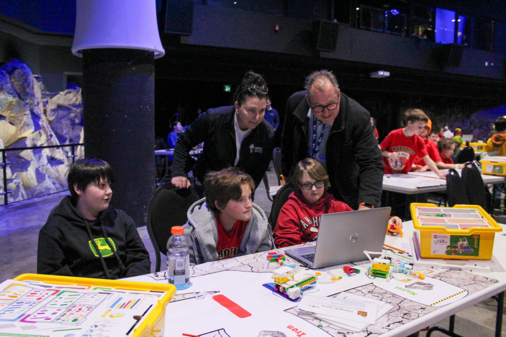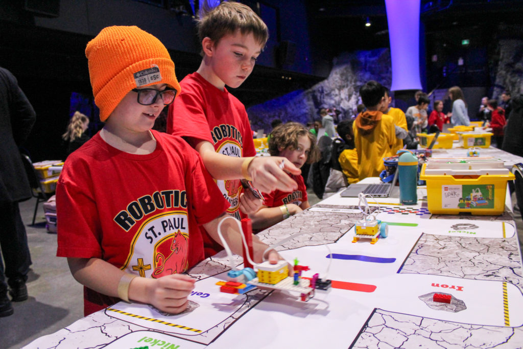 Grade 4–6 students from the Sudbury Catholic District School Board joined peers from the Rainbow District School Board for a full day of hands-on robotics at Science North. In teams of three, students took on a fast-paced build challenge using LEGO Spike Essential kits, designing, building, and programming robots to complete mining-inspired coding challenges.